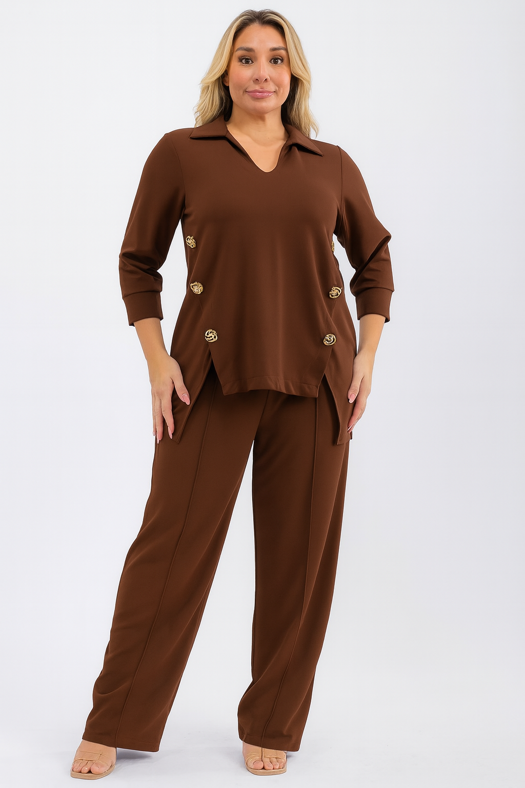 DRESSY BROWN COLLARED HIGH LOW SET