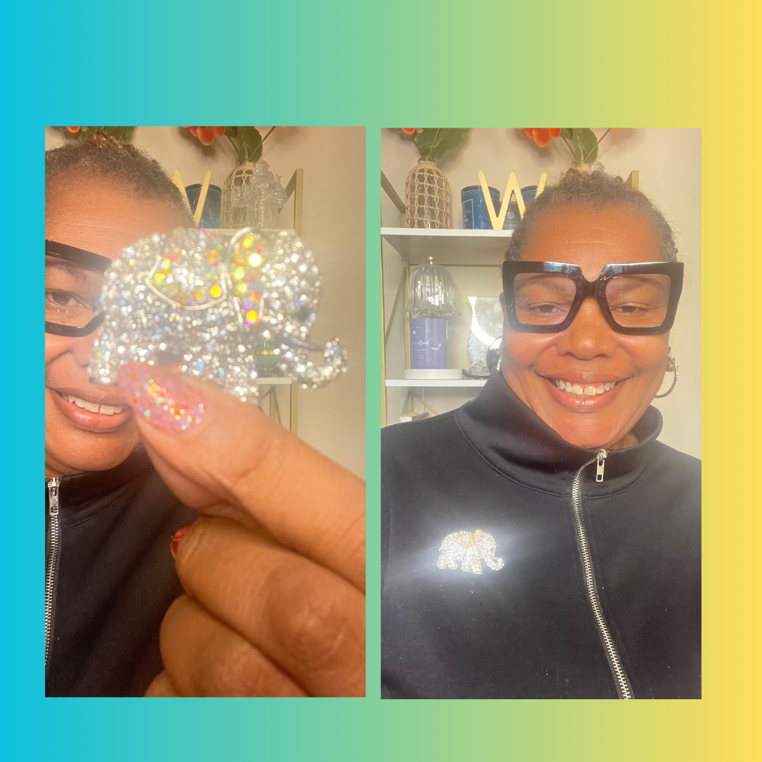 Add a touch of glamour and symbolism to your outfit with our Elephant Rhinestone Brooch from Bella’s Brooches & Baubles. This sparkling elephant pin features shimmering rhinestones, a timeless silhouette, and versatile styling—making it perfect for blazers, dresses, or casual chic looks. Known as a symbol of strength, wisdom, and good fortune, this crystal brooch is a must-have accessory for women who love statement jewelry that shines. Ideal for gifting or treating yourself, this rhinestone brooch is designed to help you sparkle like the Bella Queen you are.