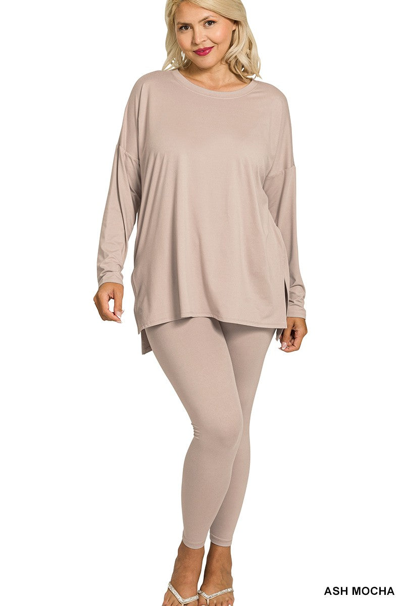 Bella Queen, meet your lounge-to-lunch uniform. This Brushed DTY Microfiber Loungewear Set (tunic top + matching leggings) is buttery-soft like a hug and stretchy like a dream. The relaxed, tunic-length top flows with side slits for easy movement, while the comfy pull-on leggings smooth and support without squeezing. It keeps its shape, so you stay cute from couch time to quick errands.
