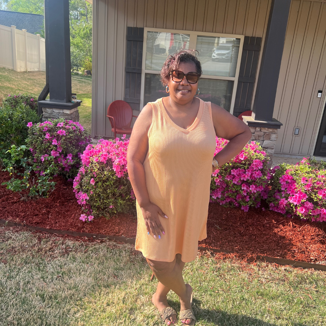 Slip into effortless style with this flirty tank dress, featuring a flattering V-neckline that gives just the right touch of charm. Made with soft, stretchy knit fabric, she’s as comfy as your favorite tee but way cuter. Perfect for sunny days, weekend plans, or just living your best "cool & casual" life! ☀️ Wear it solo, belt it up, or toss on a cute denim jacket — she's your versatile BFF. Models are wearing Small (5'5")  2X (5'7")